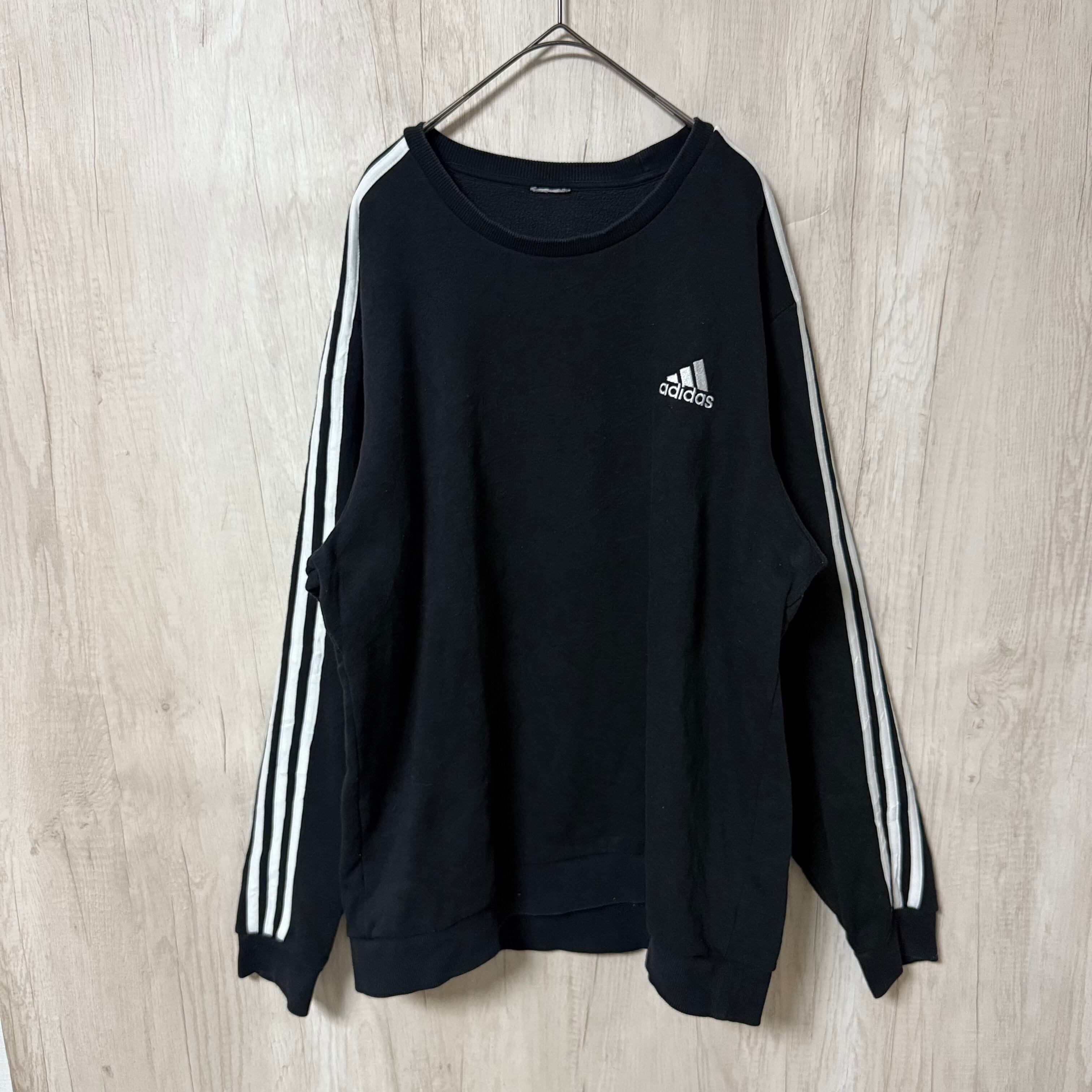 adidas アディダス 古着 トレーナー スウェット 刺繍ロゴ 黒 ブラック